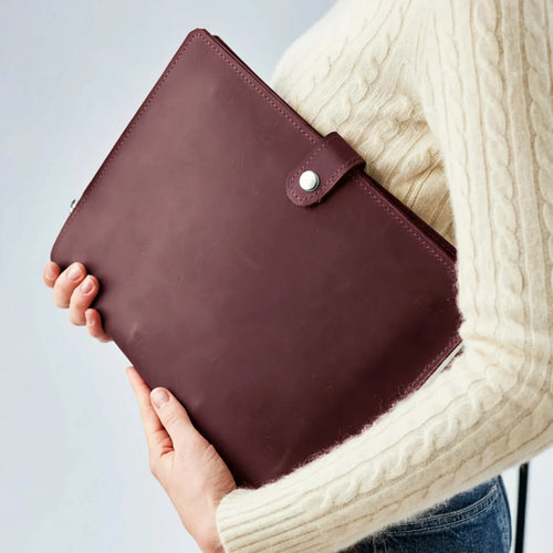 - Tech Accessories: Leather laptop sleeves, iPad covers, and cable organizers — refined protection for devices.