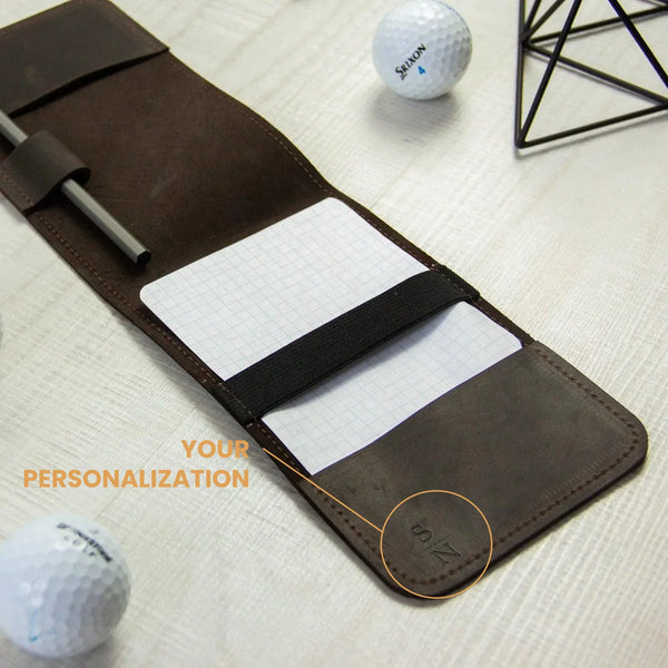 A well-organized golfer is a focused golfer. Keep your essentials secure with our golf valuables pouch, which offers a compact and stylish way to store your phone, keys, and other small items. Our leather golf scorecard holder ensures that you can track your performance with ease, keeping your scorecard protected from wear and tear. If you prefer a custom touch, our personalized golf scorecard holders and engraved leather golf pouches allow you to add a unique element to your gear.