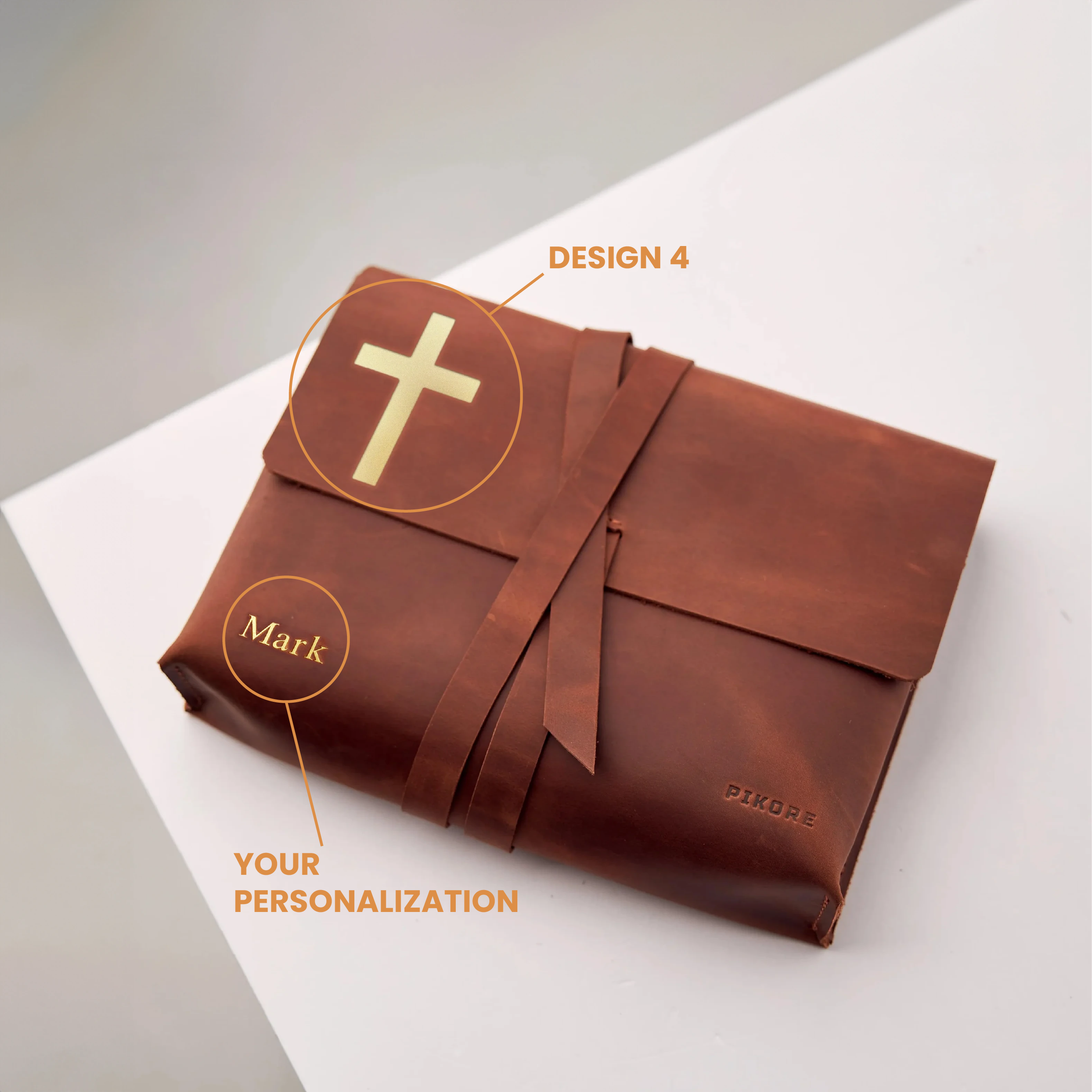 1. Laser Engraving: burnt-in leather of text or image, logo, or a heartfelt message. After your order send your image or logo to sales@pikore.shop, and let us handle the rest.