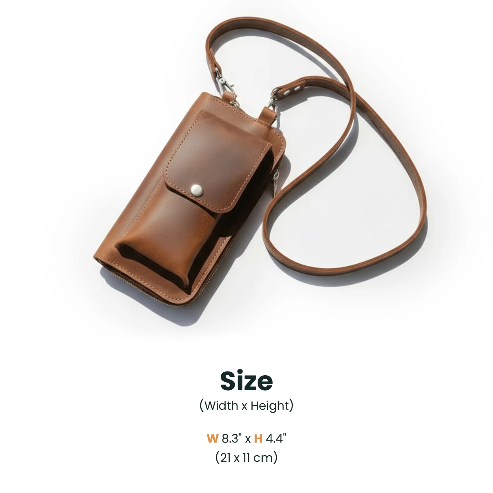 Handcrafted from genuine leather, the Crossbody Phone Bag is designed to combine elegance with everyday functionality. Our artisans carefully cut, stitch, and finish every detail to ensure durability and timeless style.