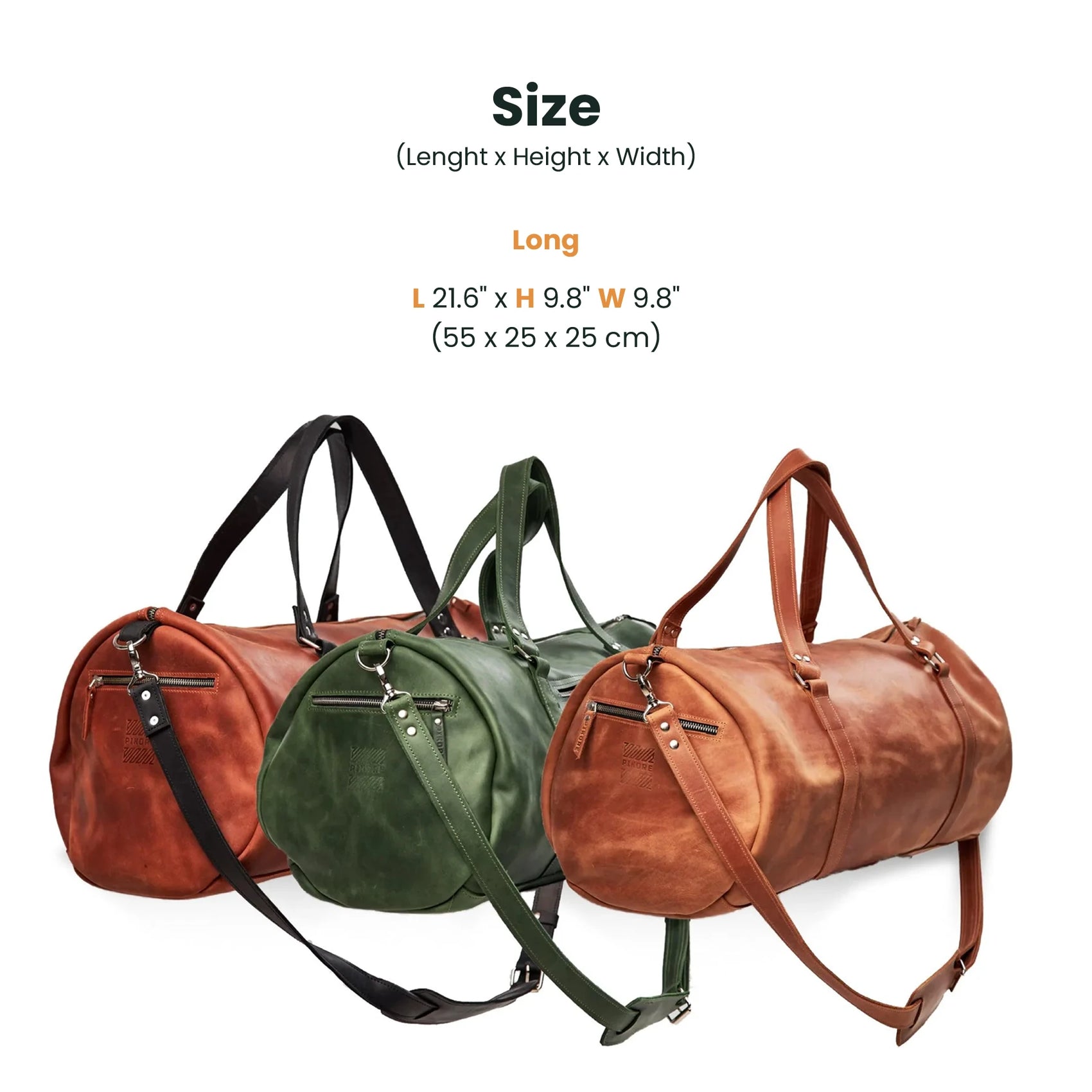 This handcrafted leather duffle bag combines timeless style with modern functionality. Perfect for weekend getaways or business trips, it offers ample space and organization in a sleek, genuine leather design.