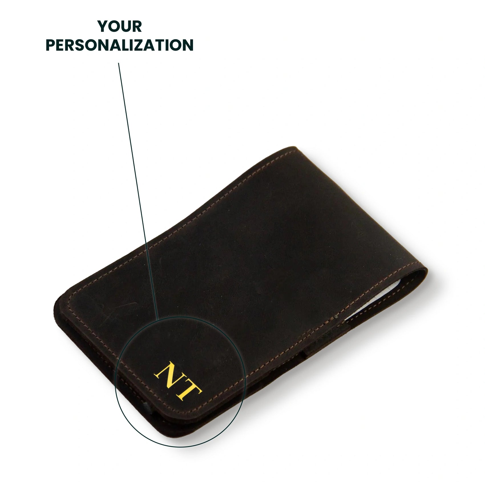 2. Stamping: debossed into leather by heated metal letter stamps. Best for initials, short word.