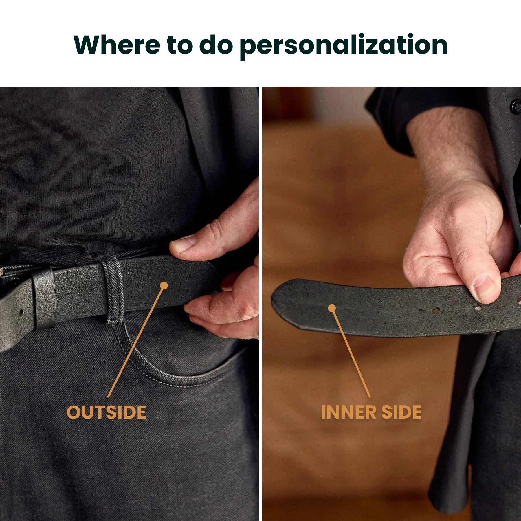 1. Laser Engraving: burnt-in leather of text or image, logo, or a heartfelt message. After your order send your image or logo to sales@pikore.shop, and let us handle the rest.