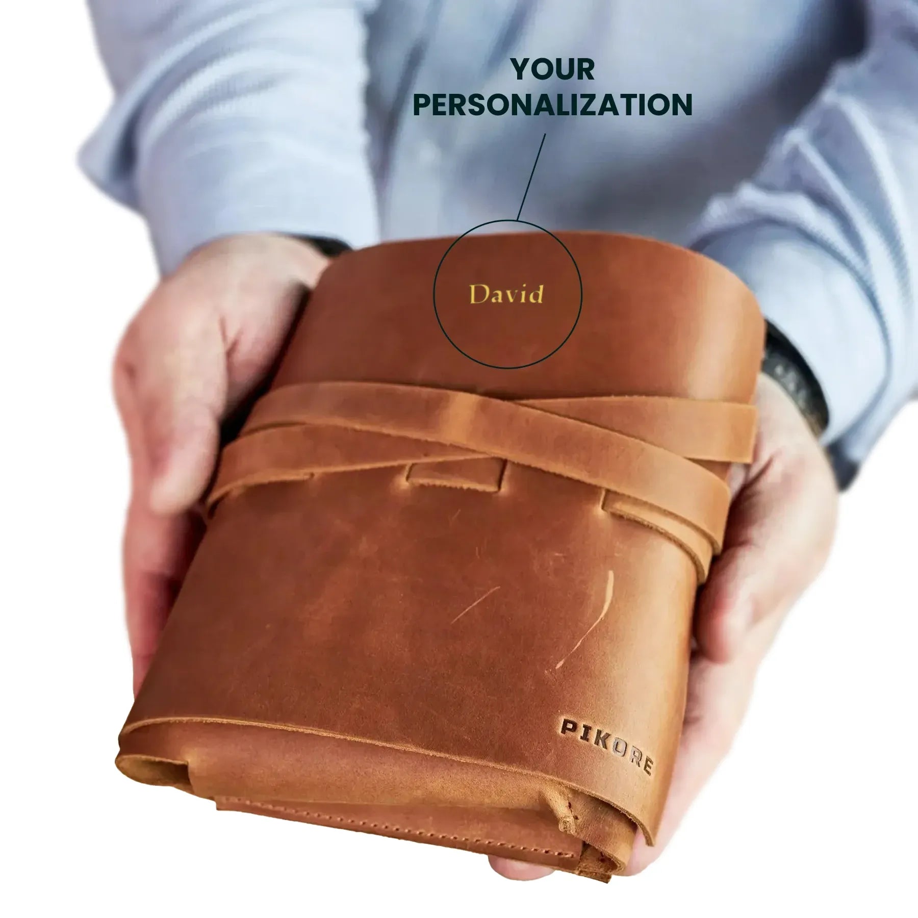 1. Laser Engraving: burnt-in leather of text or image, logo, or a heartfelt message. After your order send your image or logo to sales@pikore.shop, and let us handle the rest.