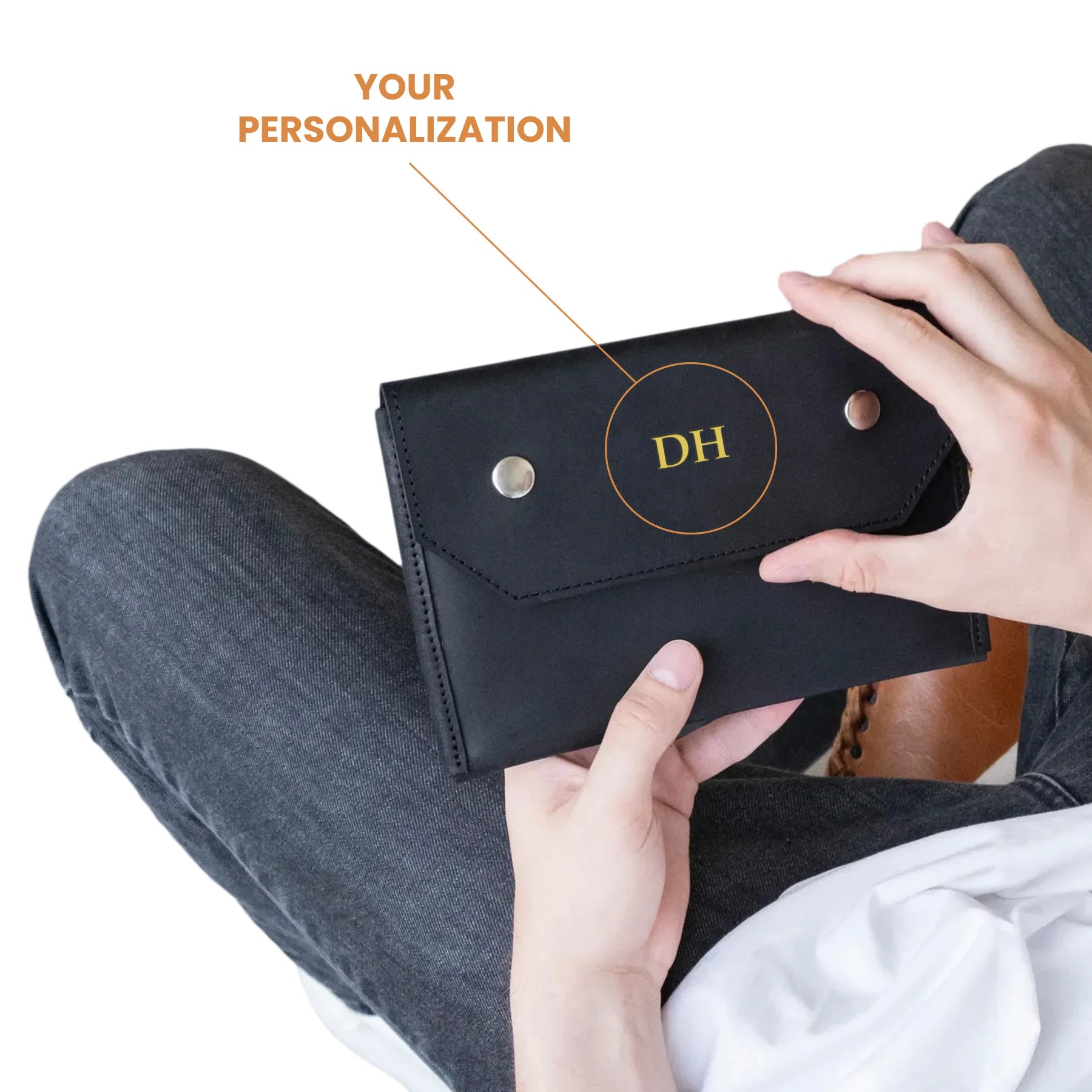 With its sleek yet practical design, this wallet is perfect for both personal use and business travel. Ample space inside keeps everything organized—from currency to passports and even a checkbook. Its slim profile allows it to fit easily into bags or be carried by hand as a stylish accessory.