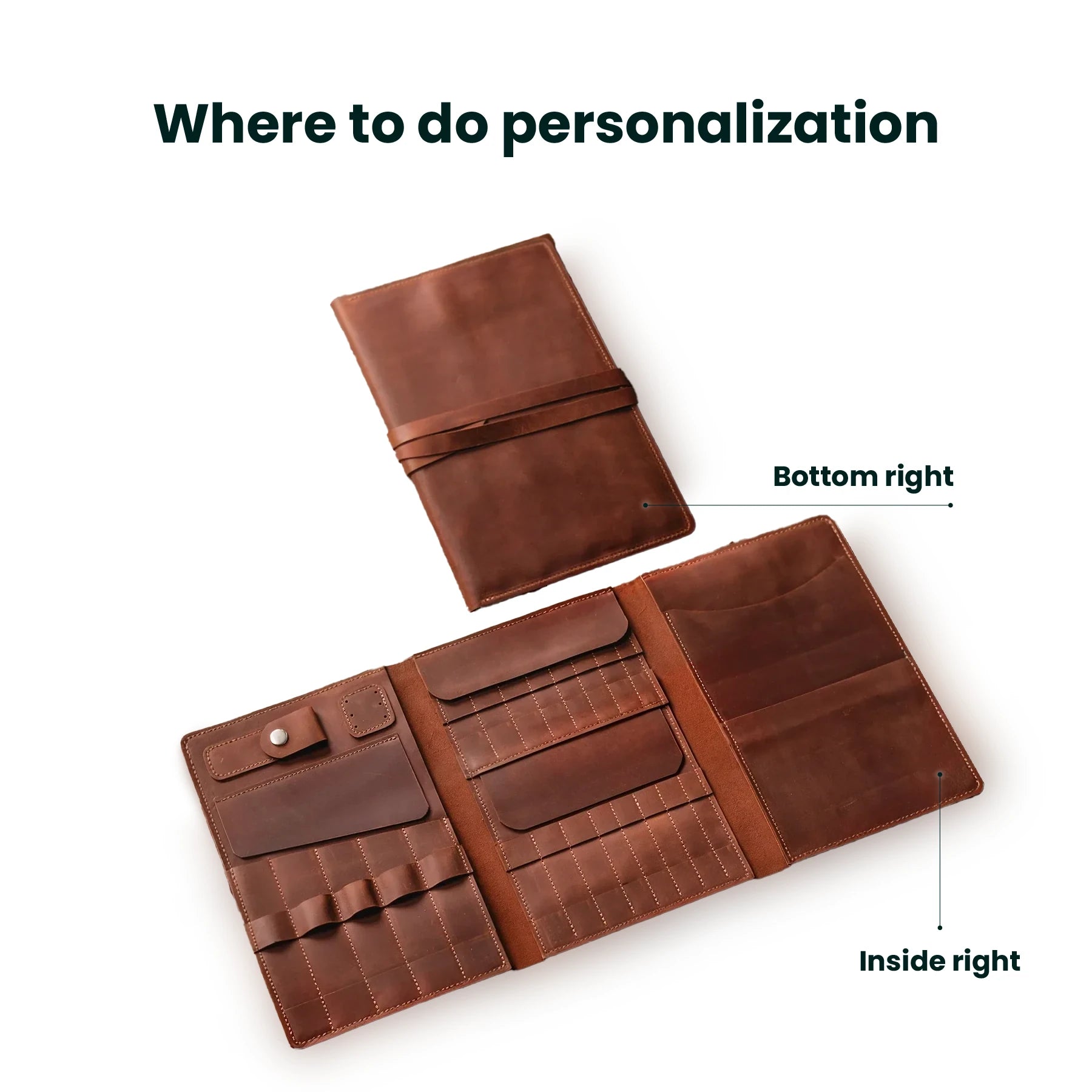 1. Laser Engraving: burnt-in leather of text or image, logo, or a heartfelt message. After your order send your image or logo to sales@pikore.shop, and let us handle the rest.