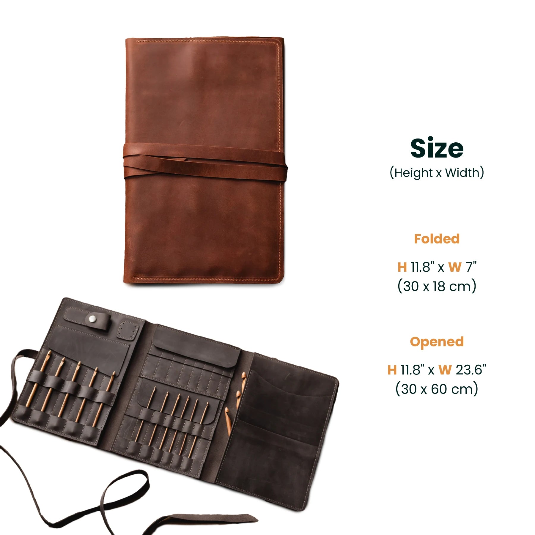 Made from genuine leather, this case is both soft and durable, offering long-lasting protection for your crochet hooks. The foldable design allows it to lay flat when open and roll up compactly for easy storage in your crochet tote bag or project bag. Inside, multiple secure loops hold various hook sizes, keeping them organized and protected from damage.
