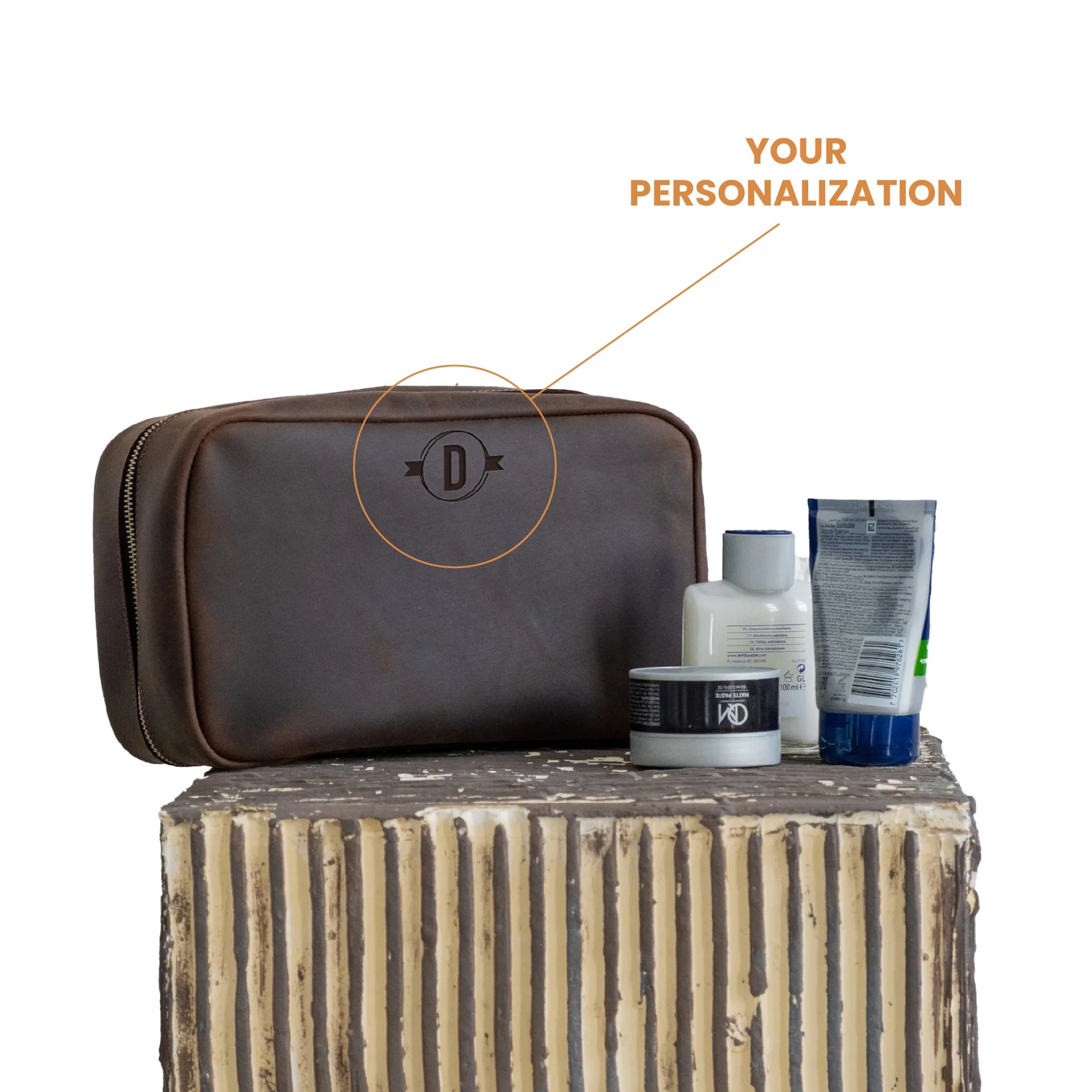 A sophisticated and functional Toiletry Bag Maison is designed for those who appreciate quality and convenience. Crafted from full-grain leather, this compact yet spacious dopp kit is perfect for storing shaving essentials, toiletries, and grooming accessories. Ideal for both home organization and hassle-free travel.