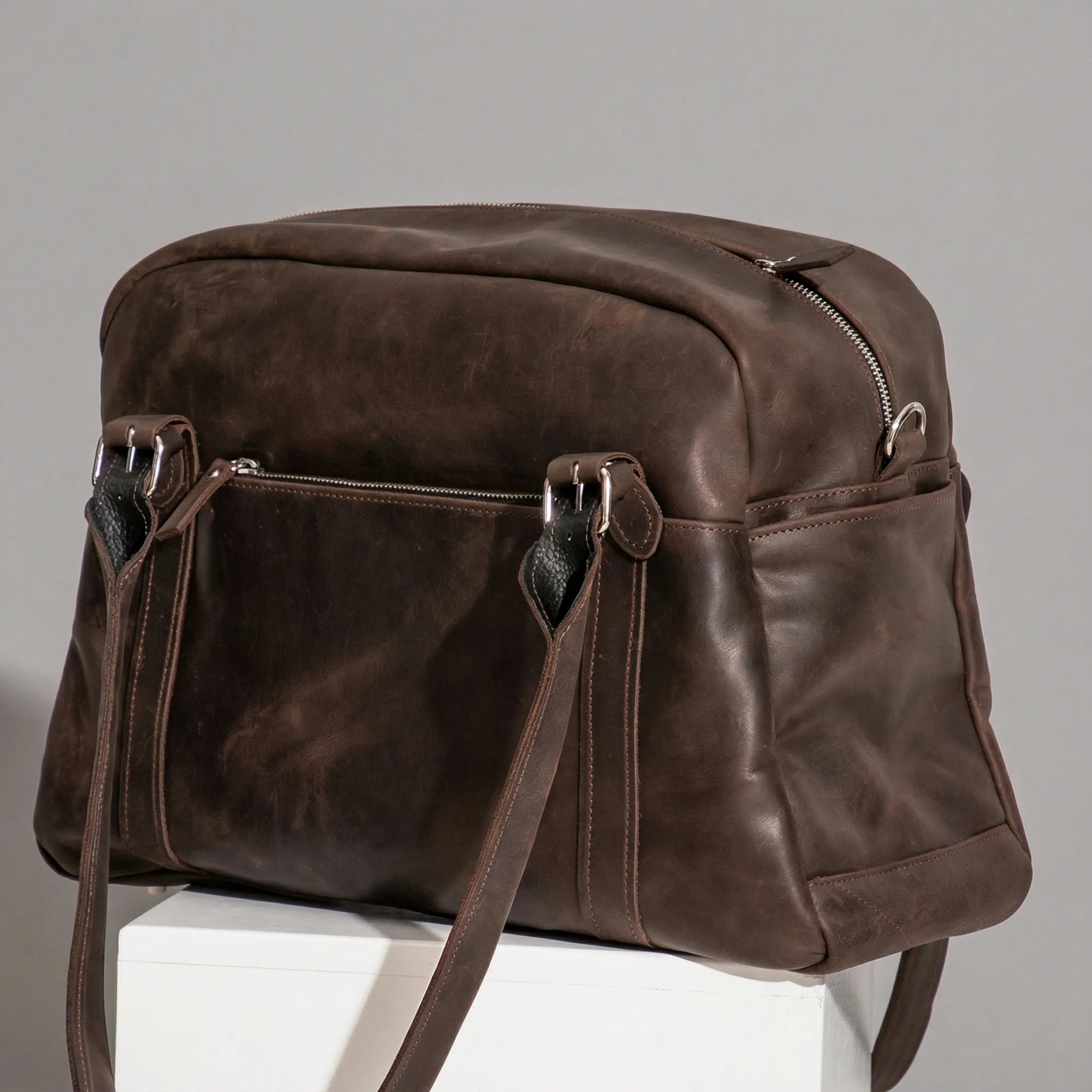 The Pikore Leather Gym Bag is crafted to withstand the demands of an active lifestyle. The genuine leather construction ensures long-lasting durability, while the timeless design never goes out of style. No special care is required to maintain the bag's appearance and functionality.