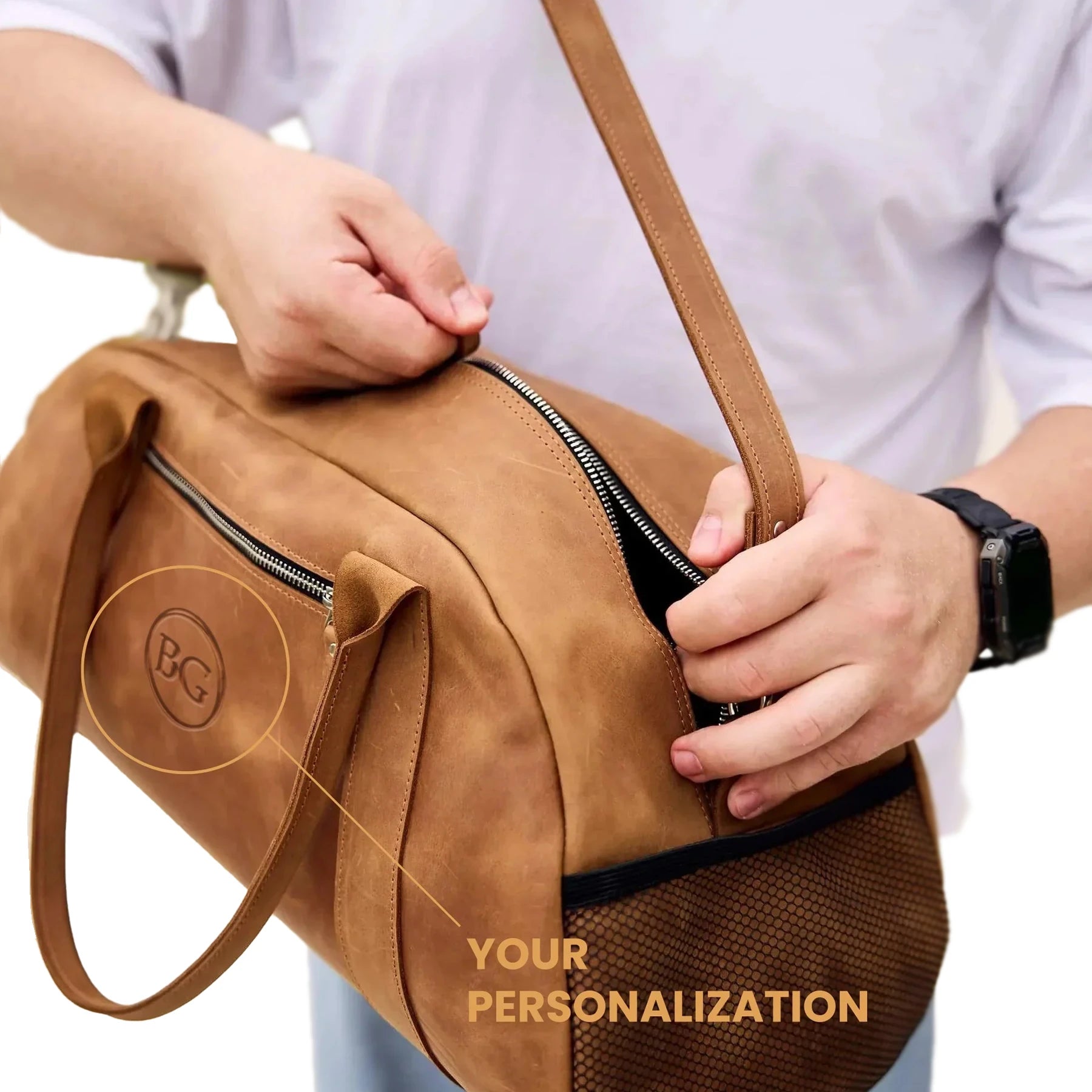 Crafted from genuine leather, this handmade gym bag combines style and functionality. With ample storage and comfortable carrying options, it's the perfect companion for your active lifestyle.