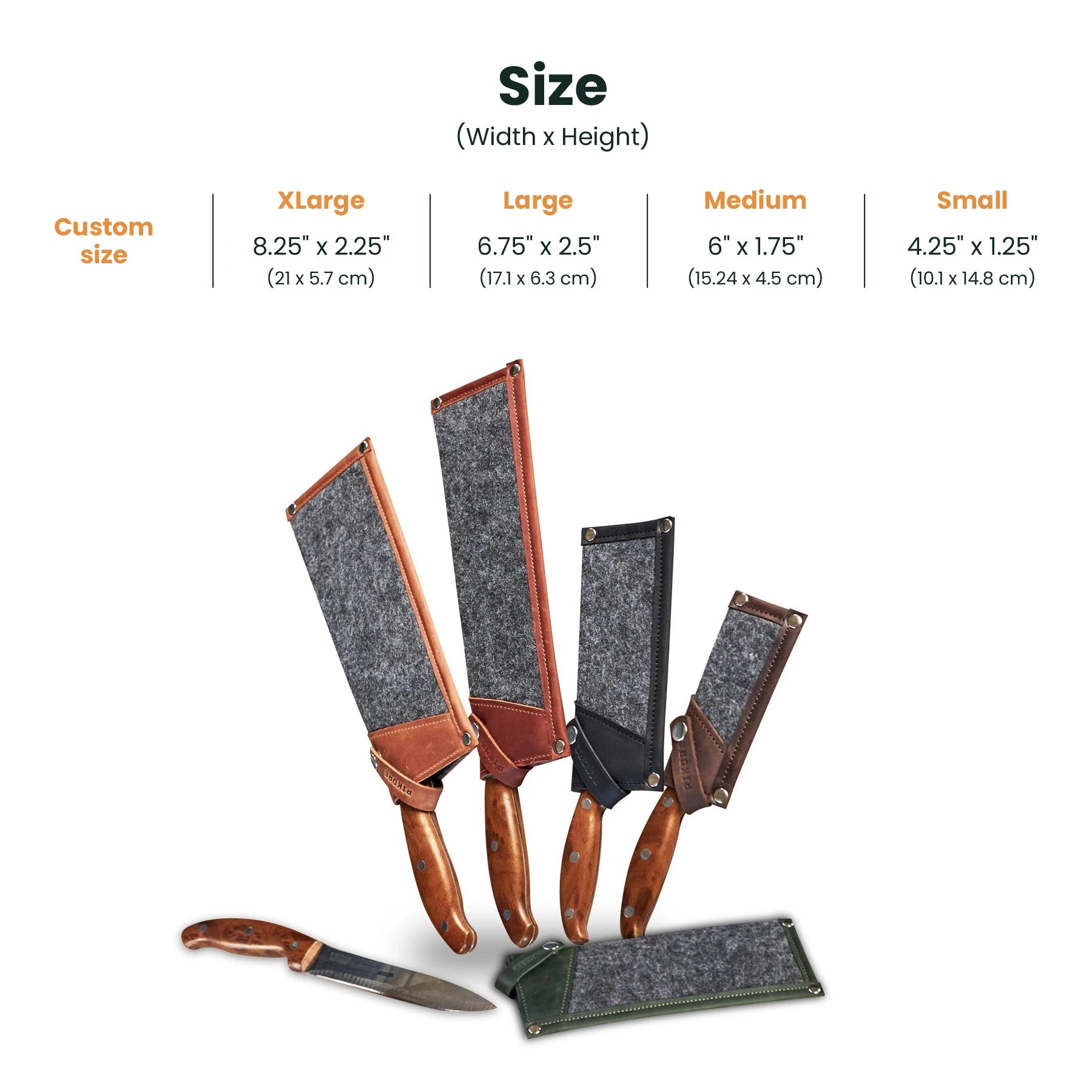 Pikore's leather knife covers are built to last, providing long-term protection for your valued knives. The high-quality leather is resistant to cuts and abrasions. No special care is required - simply wipe clean if needed.