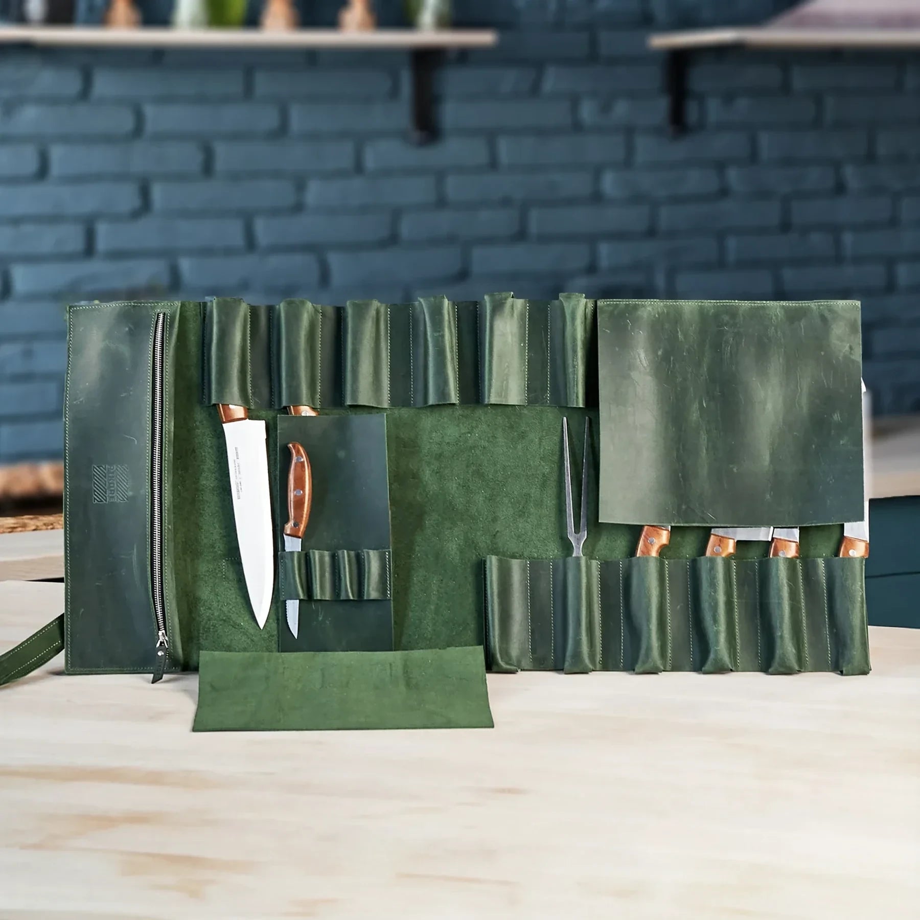 Protect your valuable knives with Pikore's handmade genuine leather knife covers. Available in flexible set sizes to suit your needs and provide a safe storage solution for your blades.