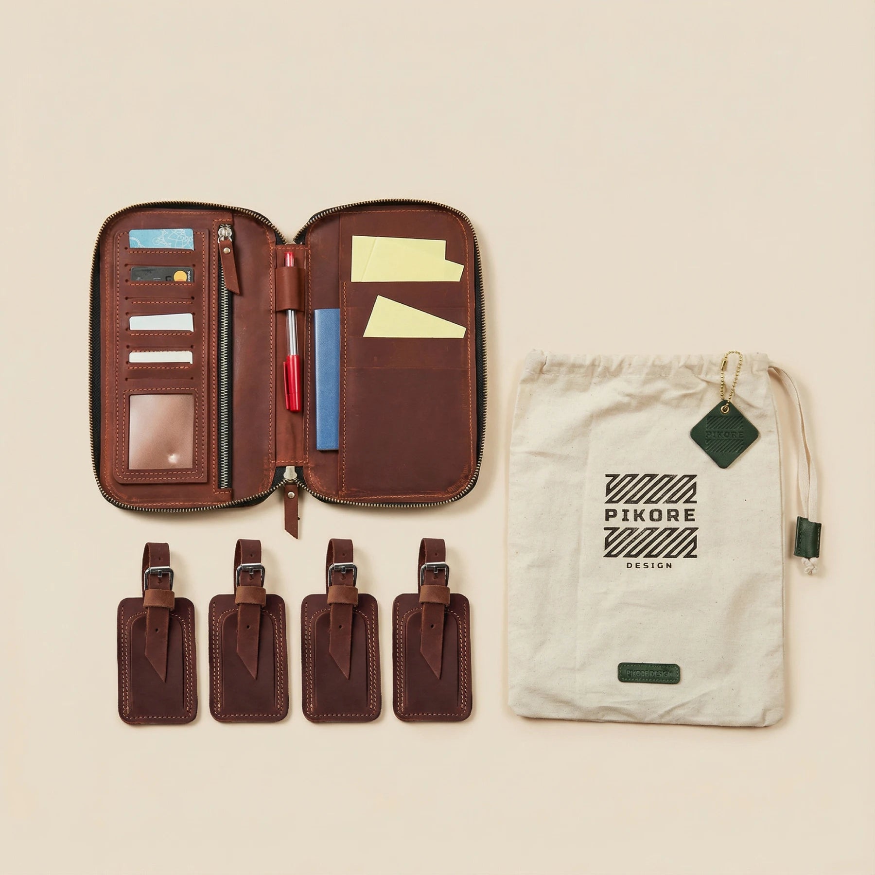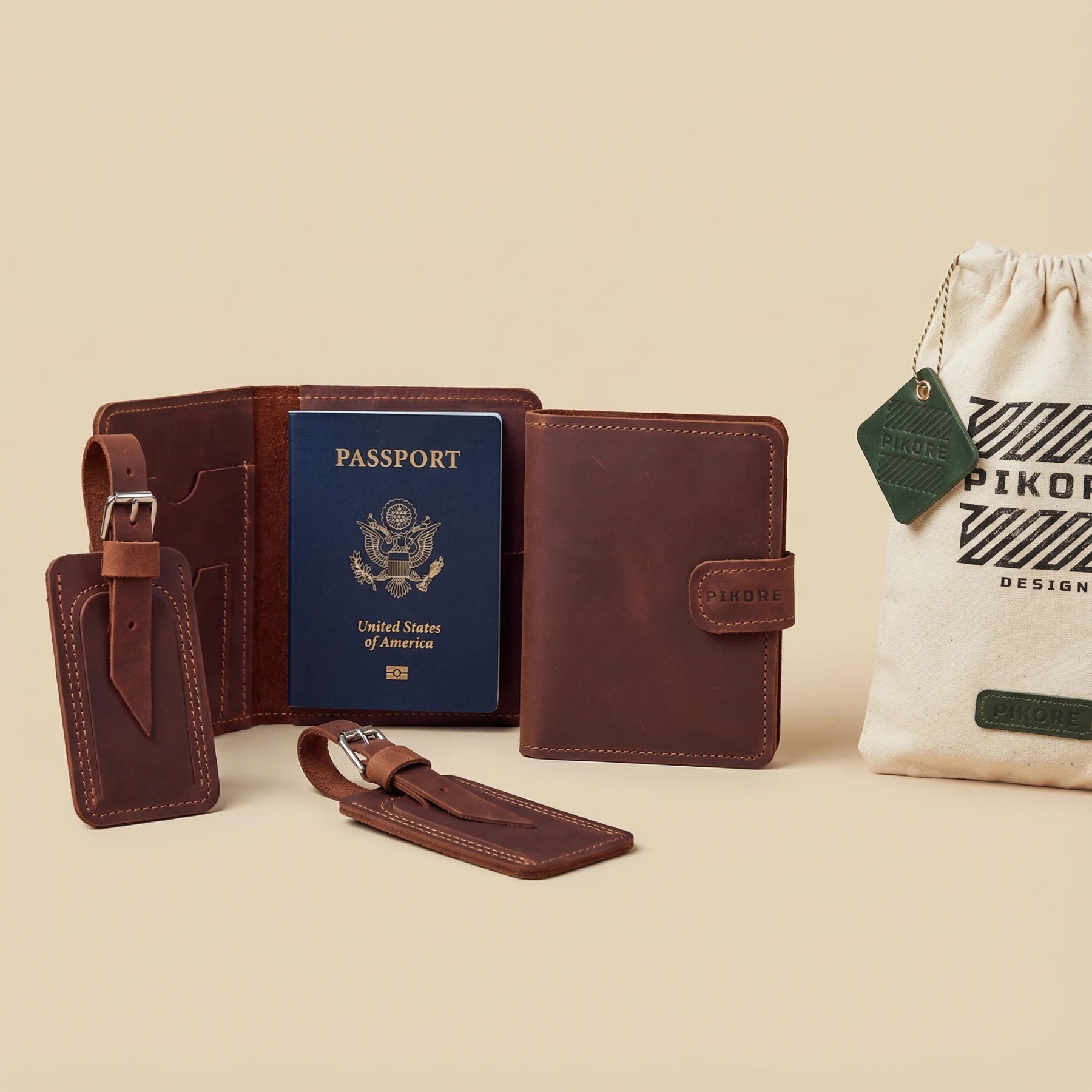 The Pikore Leather Passport Holder & Luggage tag is a must-have accessory for the modern traveler. Crafted from genuine leather, this compact and stylish holder keeps your passport, cards, and travel documents secure and easily accessible.