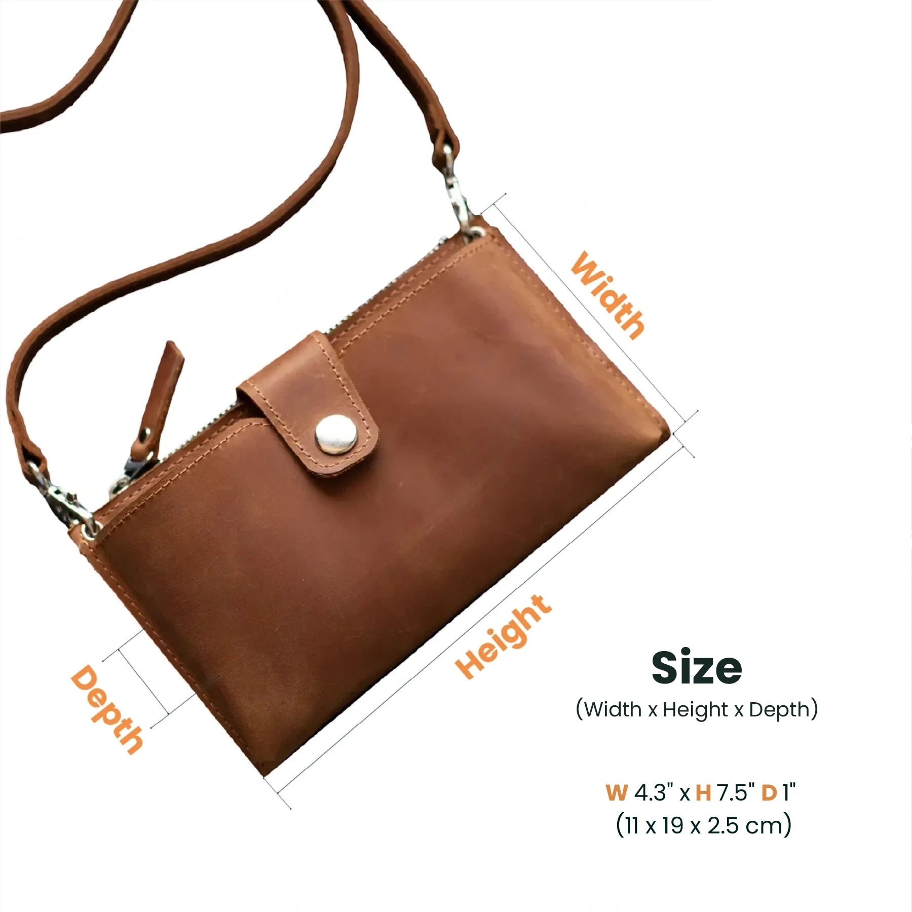 Handcrafted from height-quality genuine leather, this compact wallet bag keeps your essentials organized while freeing up your hands. Perfect for everyday errands or travel.