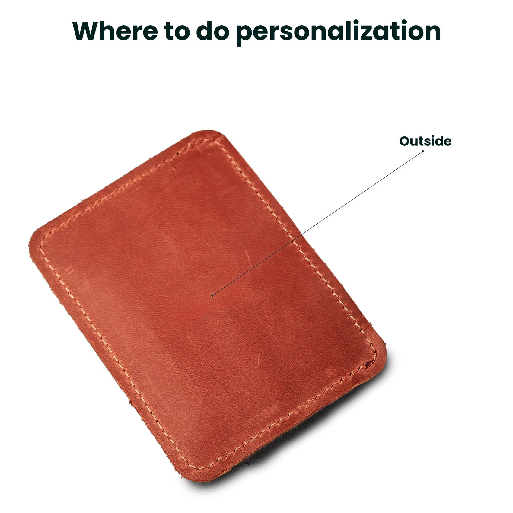 2. Stamping: debossed into leather by heated metal letter stamps. Best for initials, short word.