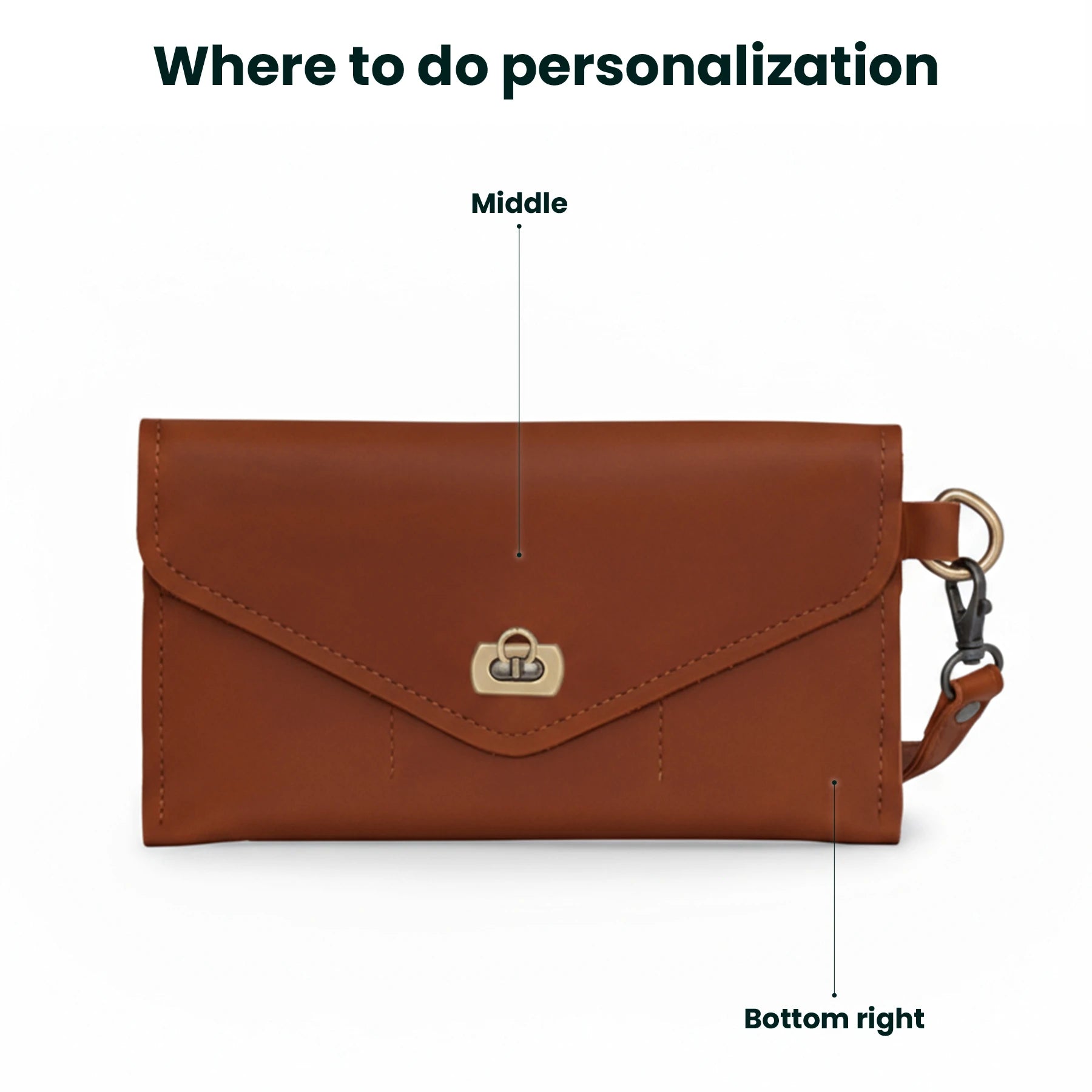 2. Stamping: debossed into leather by heated metal letter stamps. Best for initials, short word.