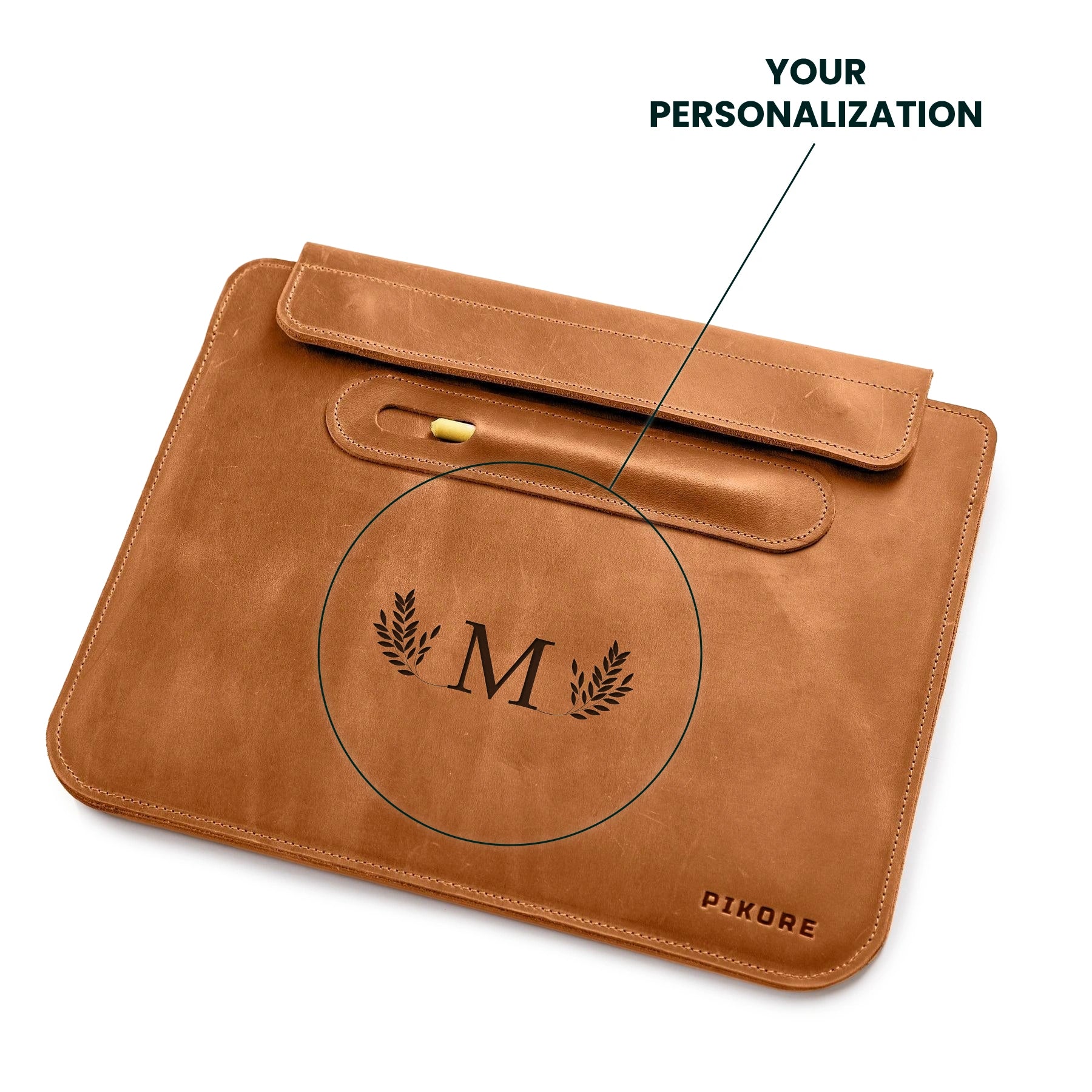 Protect your iPad or tablet in style with this handmade genuine leather case, custom-sized for a perfect fit. With an integrated pen holder and personalization options, it's both practical and personal.