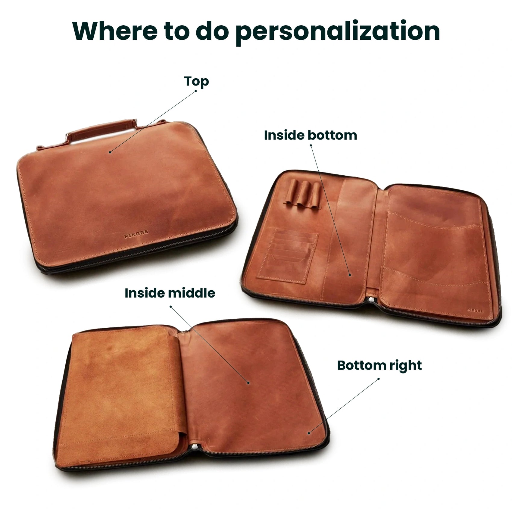 1. Laser Engraving: burnt-in leather of text or image, logo, or a heartfelt message. After your order send your image or logo to sales@pikore.shop, and let us handle the rest.