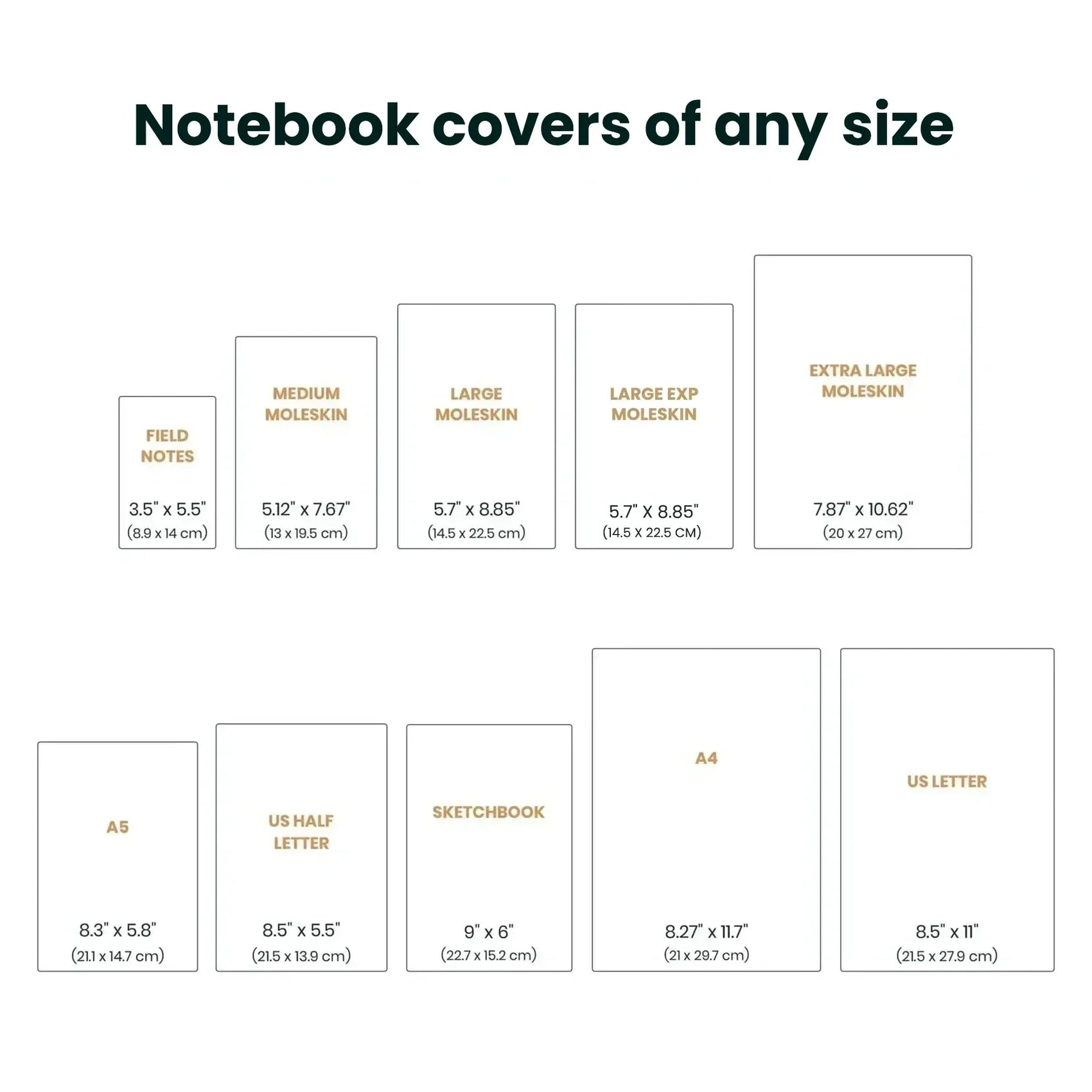 - Sizes Available: Fits popular notebooks such as Field Notes, Moleskine (Medium, Large, Extra Large, Expanded), A4, A5, US Letter, US Half Letter, and Sketchbooks
