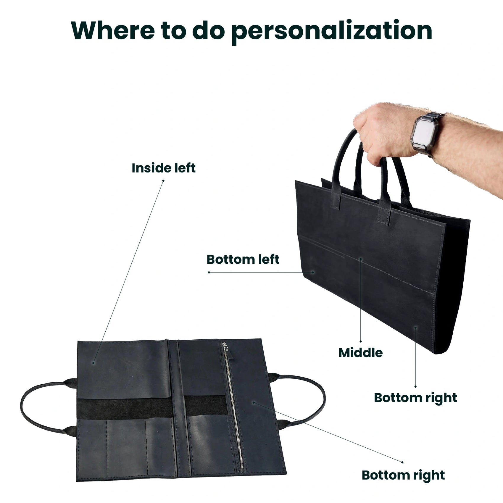 1. Laser Engraving: burnt-in leather of text or image, logo, or a heartfelt message. After your order send your image or logo to sales@pikore.shop, and let us handle the rest.