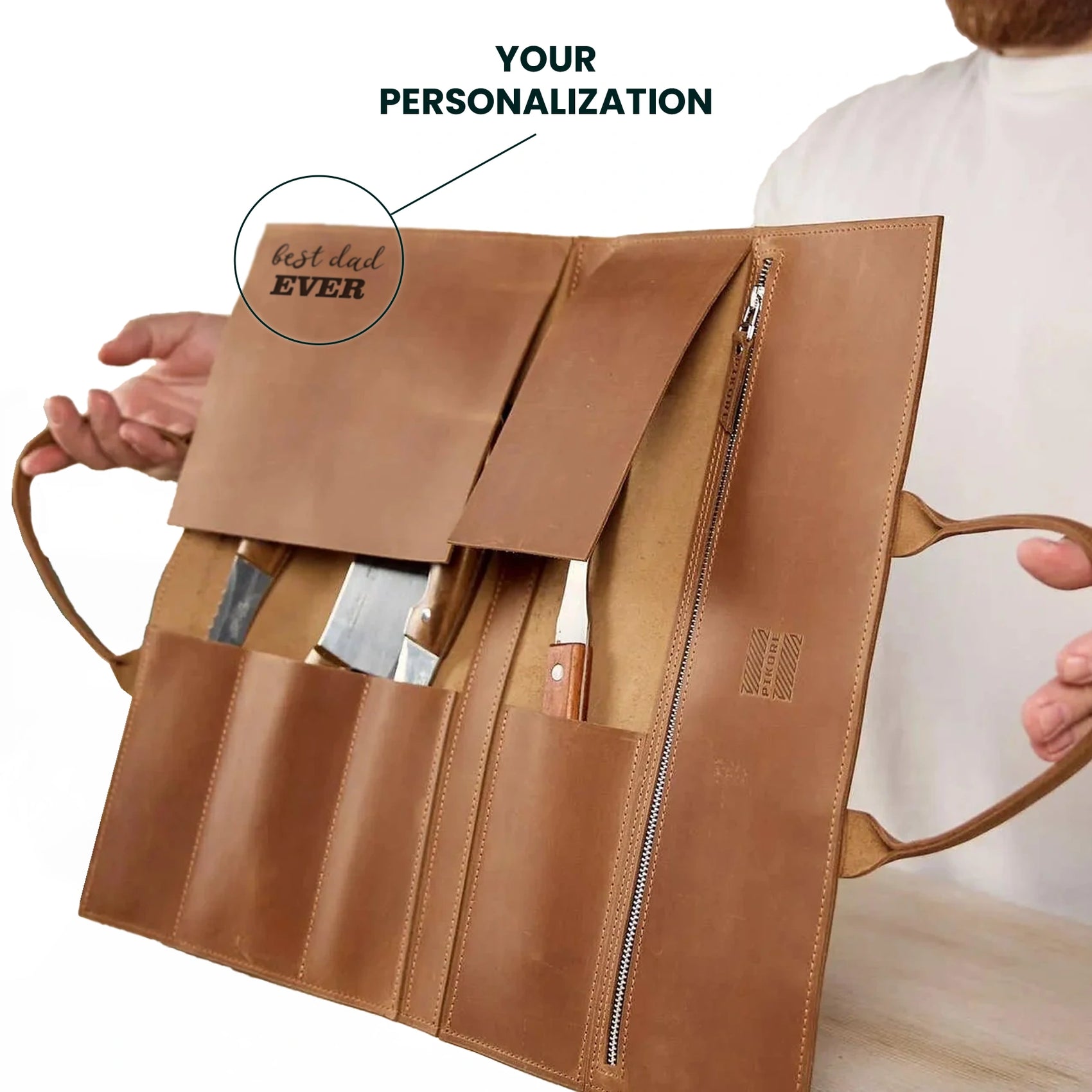 This personalized Leather Knife Bag is a must-have for anyone serious about their knife collection. Its thoughtful design and quality materials make it both functional and stylish, ensuring your knives are protected and easily accessible wherever you go.