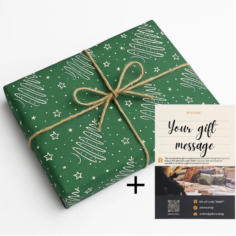 1. Laser Engraving: burnt-in leather of text or image, logo, or a heartfelt message. After your order send your image or logo to sales@pikore.shop, and let us handle the rest.