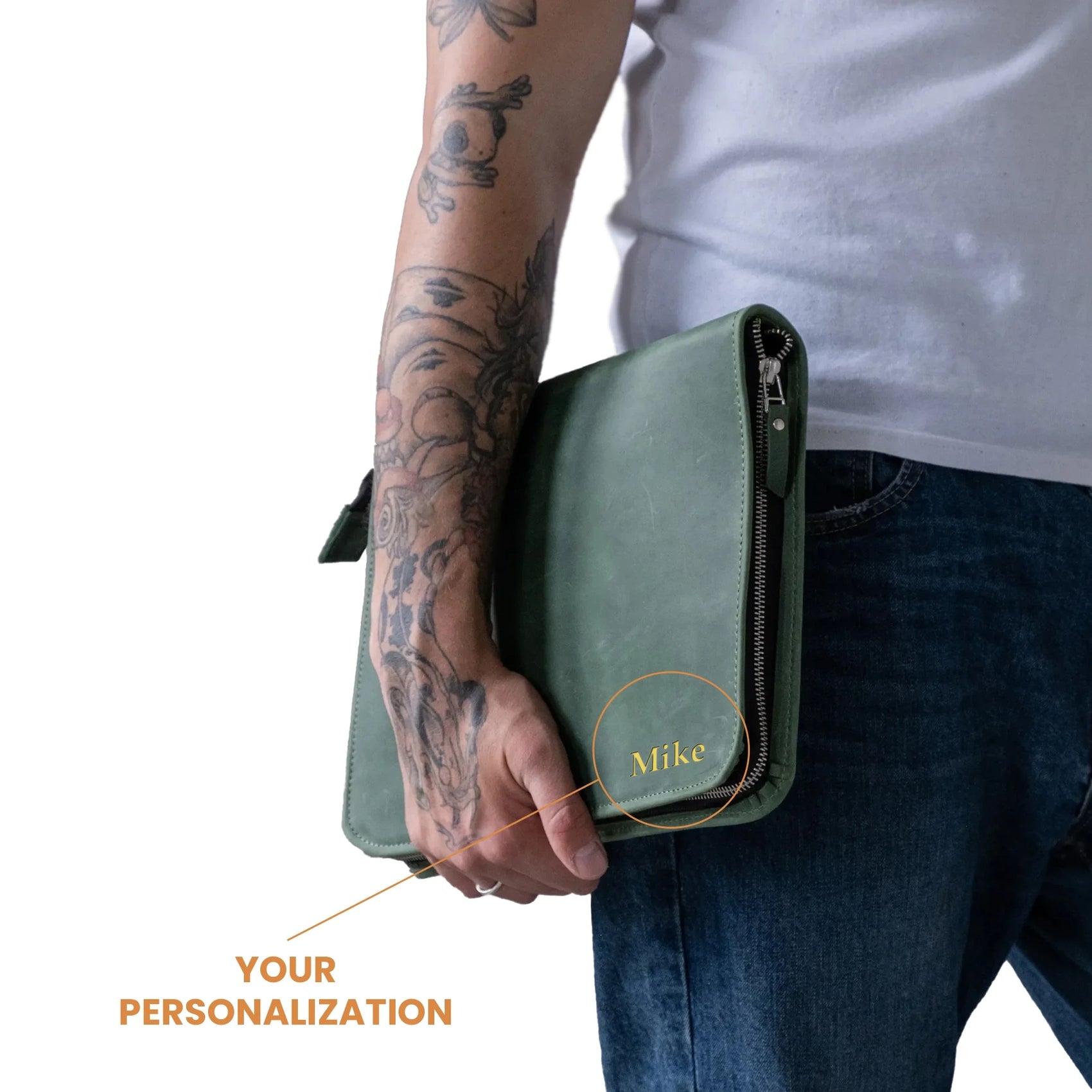 The Zippered Padfolio Titan is a perfect blend of elegance and practicality, designed to keep your important documents, notes, and tools organized in a sleek, professional manner. Crafted from high-quality genuine leather, this portfolio offers a sophisticated look while ensuring long-lasting durability. Ideal for meetings, interviews, or daily use, this portfolio will help you stay organized and make a lasting impression.