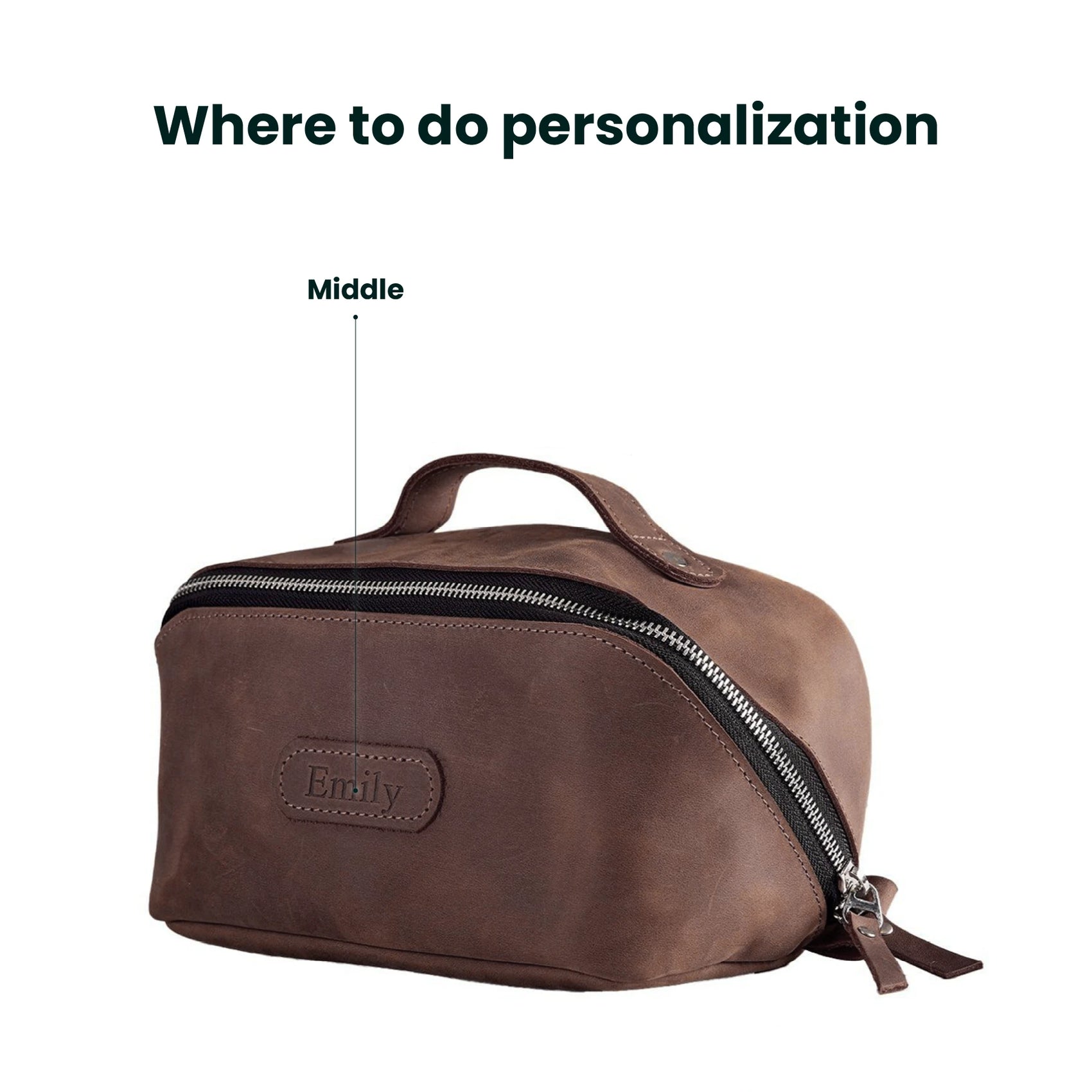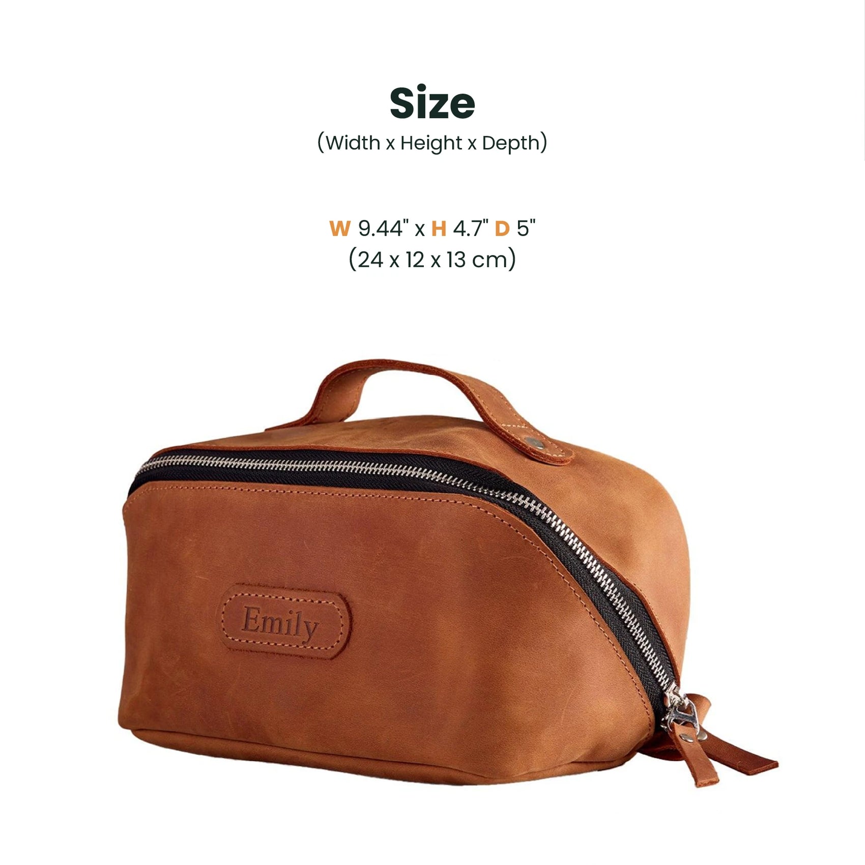 This handmade leather Makeup Bag is the perfect companion for staying organized on the go. Crafted from genuine leather, it features a secure zipper closure, convenient handle strap, and interior pockets to keep all your essentials neatly stored and easily accessible.