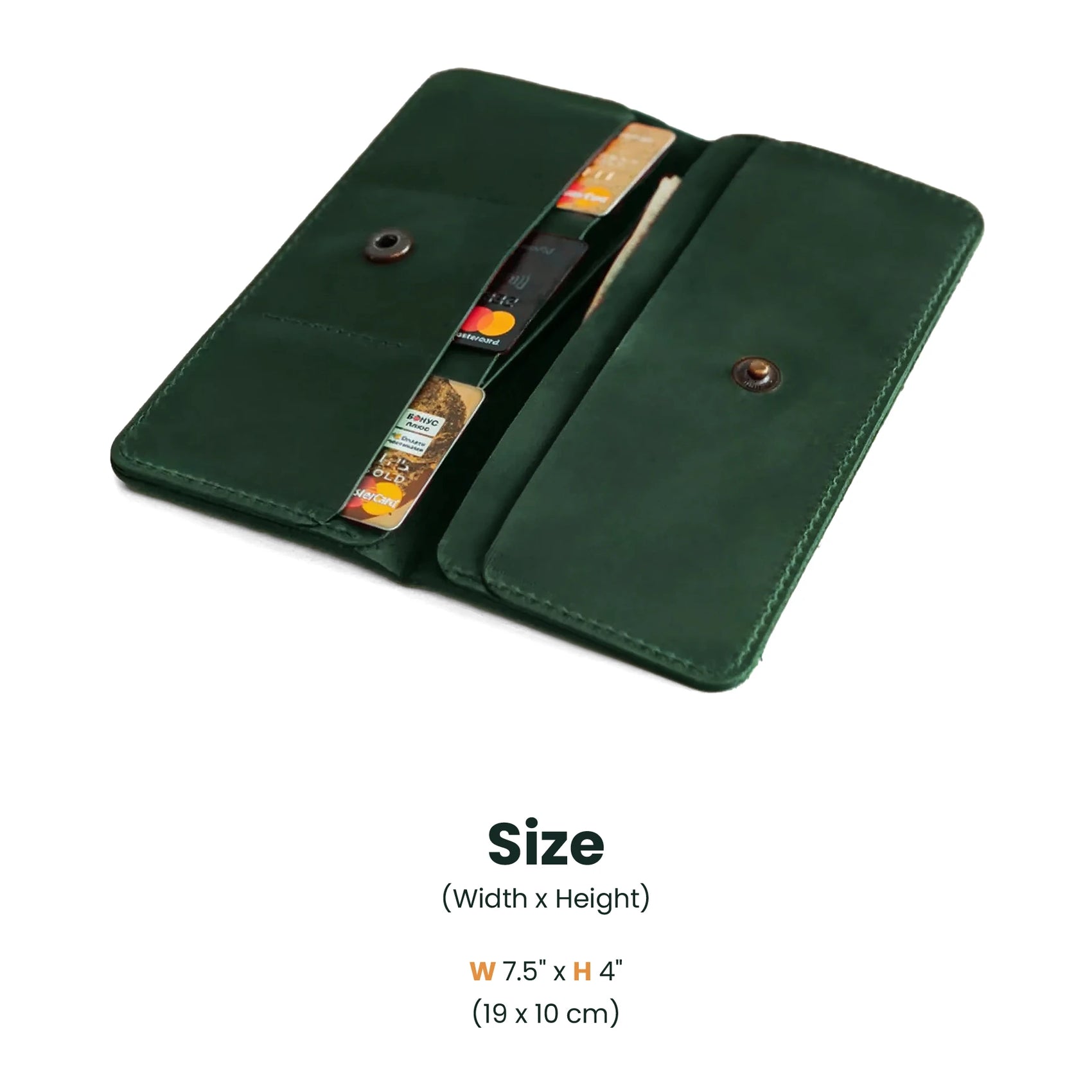 - Generous space: holds cash, cards, receipts, and even a checkbook
