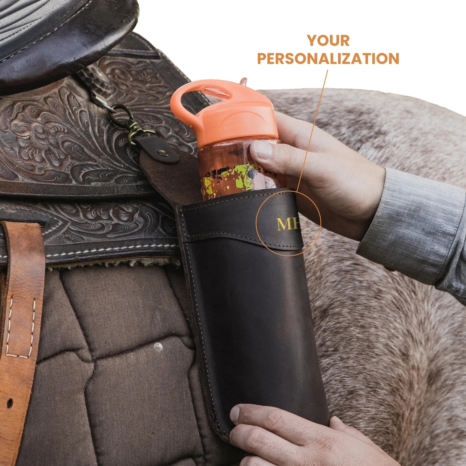 Saddle Bottle Holder Rider is crafted from premium leather that will age beautifully over time. To keep it in excellent condition, wipe it clean with a damp cloth and treat it with leather conditioner to preserve its appearance and texture.