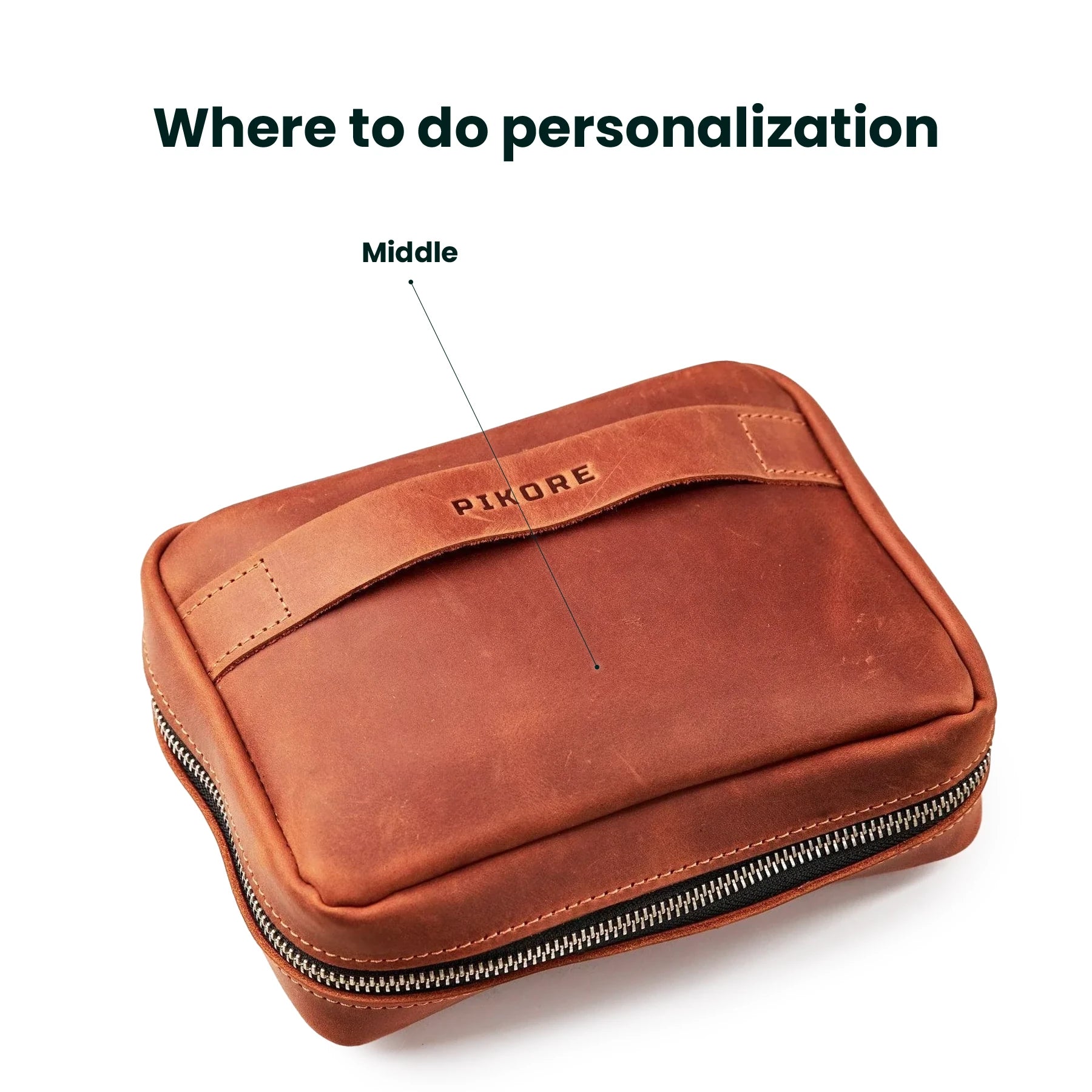 1. Laser Engraving: burnt-in leather of text or image, logo, or a heartfelt message. After your order send your image or logo to sales@pikore.shop, and let us handle the rest.