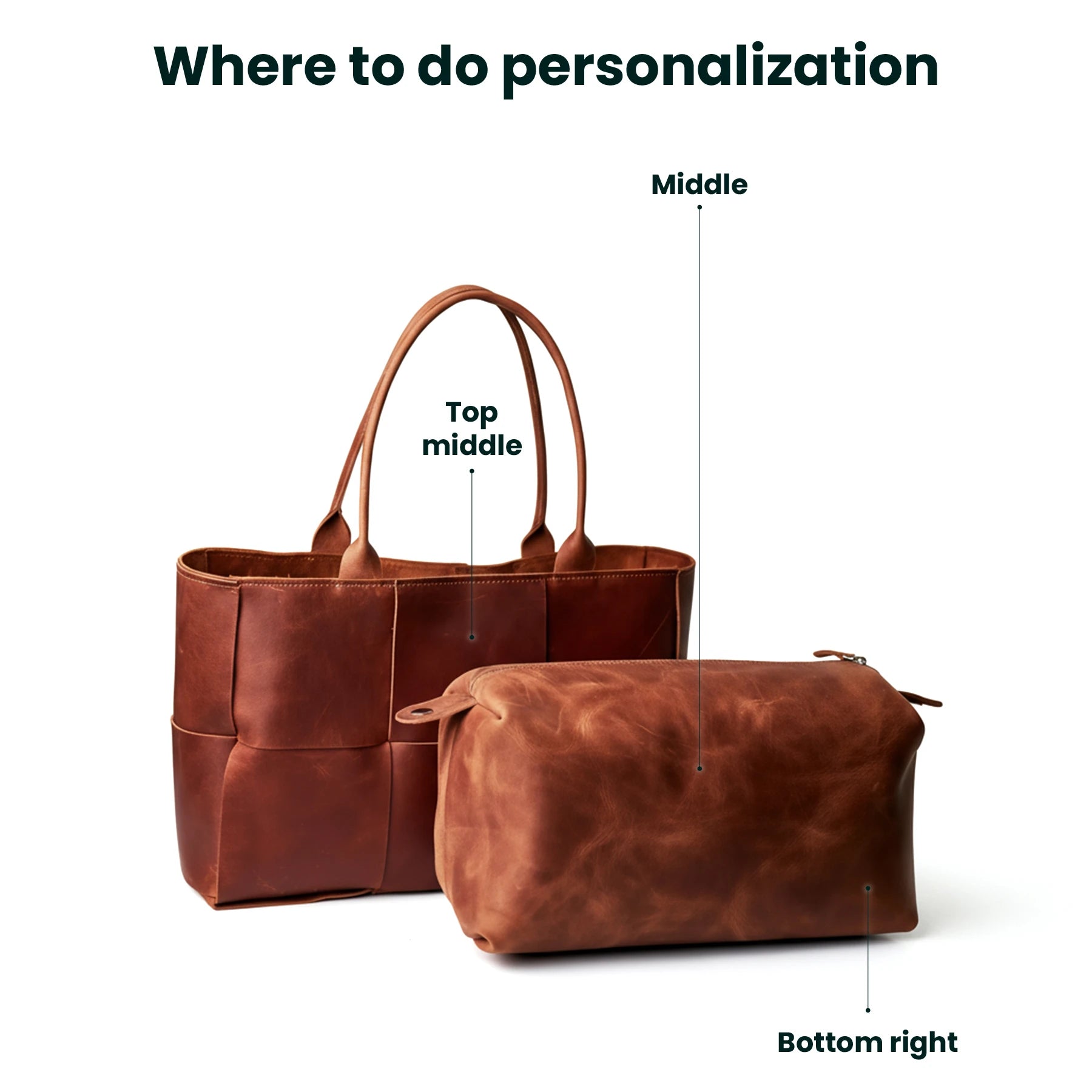 1. Laser Engraving: burnt-in leather of text or image, logo, or a heartfelt message. After your order send your image or logo to sales@pikore.shop, and let us handle the rest.