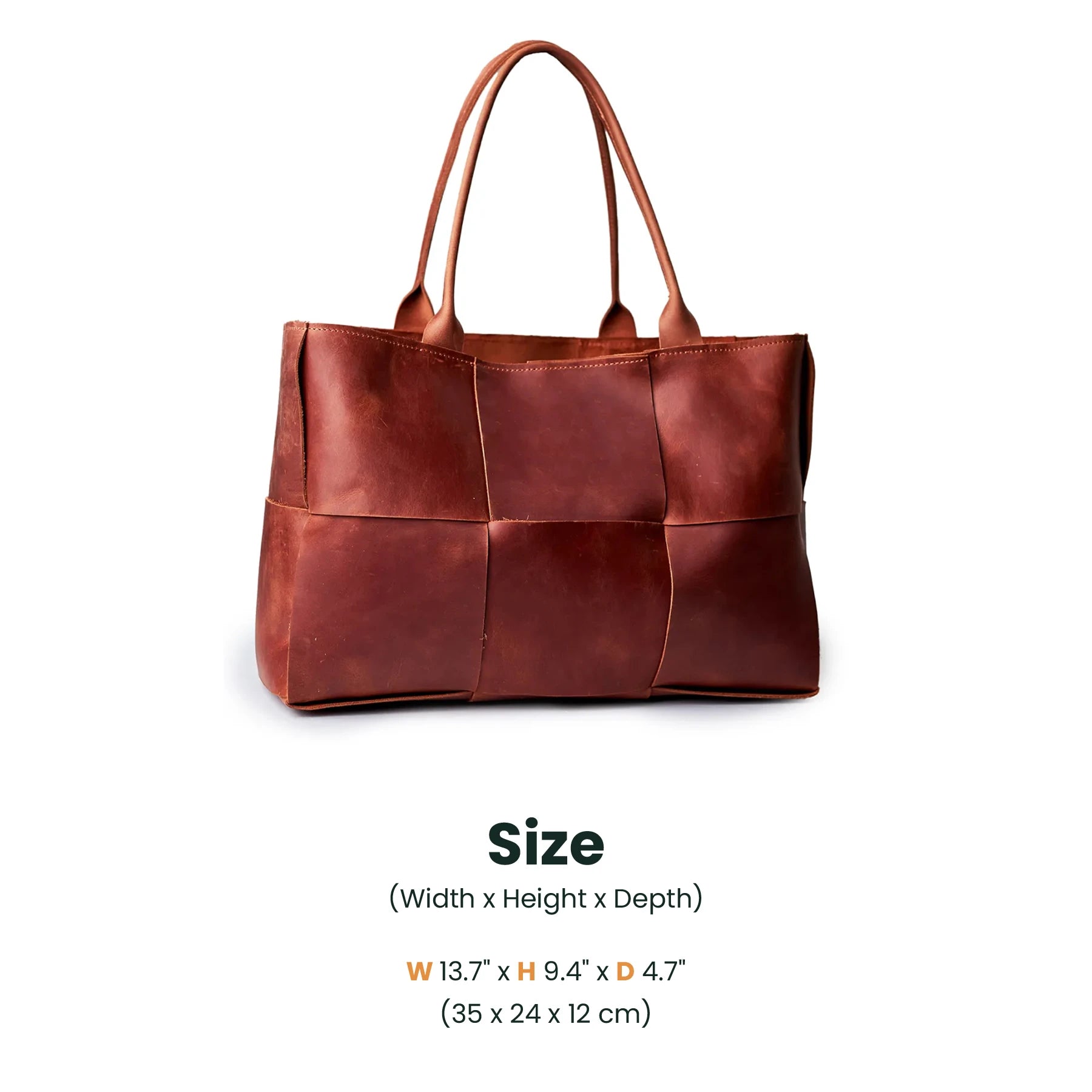 The beautifully woven exterior adds sophistication, while the spacious interior ensures it’s as practical as it is stylish. Whether you’re heading to work, a casual brunch, or a weekend getaway, this leather bag has you covered.